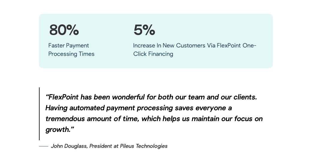 MSPs using FlexPoint see this in practice. For example, Pileus Technologies was able to streamline billing and payment workflows and increase their payment processing time by 80%.